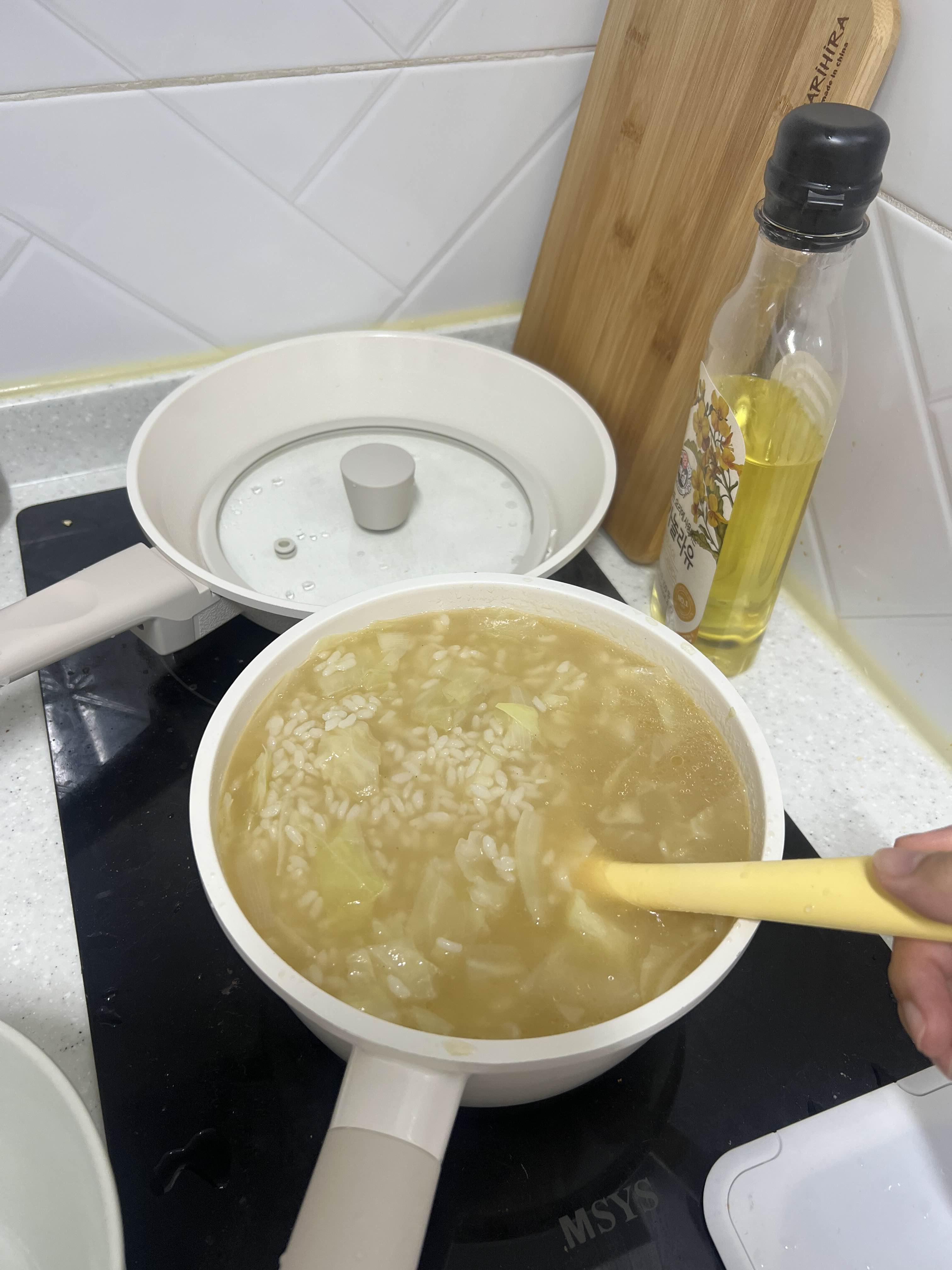 최근 체하고 나니 기력이 없어 건강을 챙기고자 양배추 죽을 끓여먹었습니다.