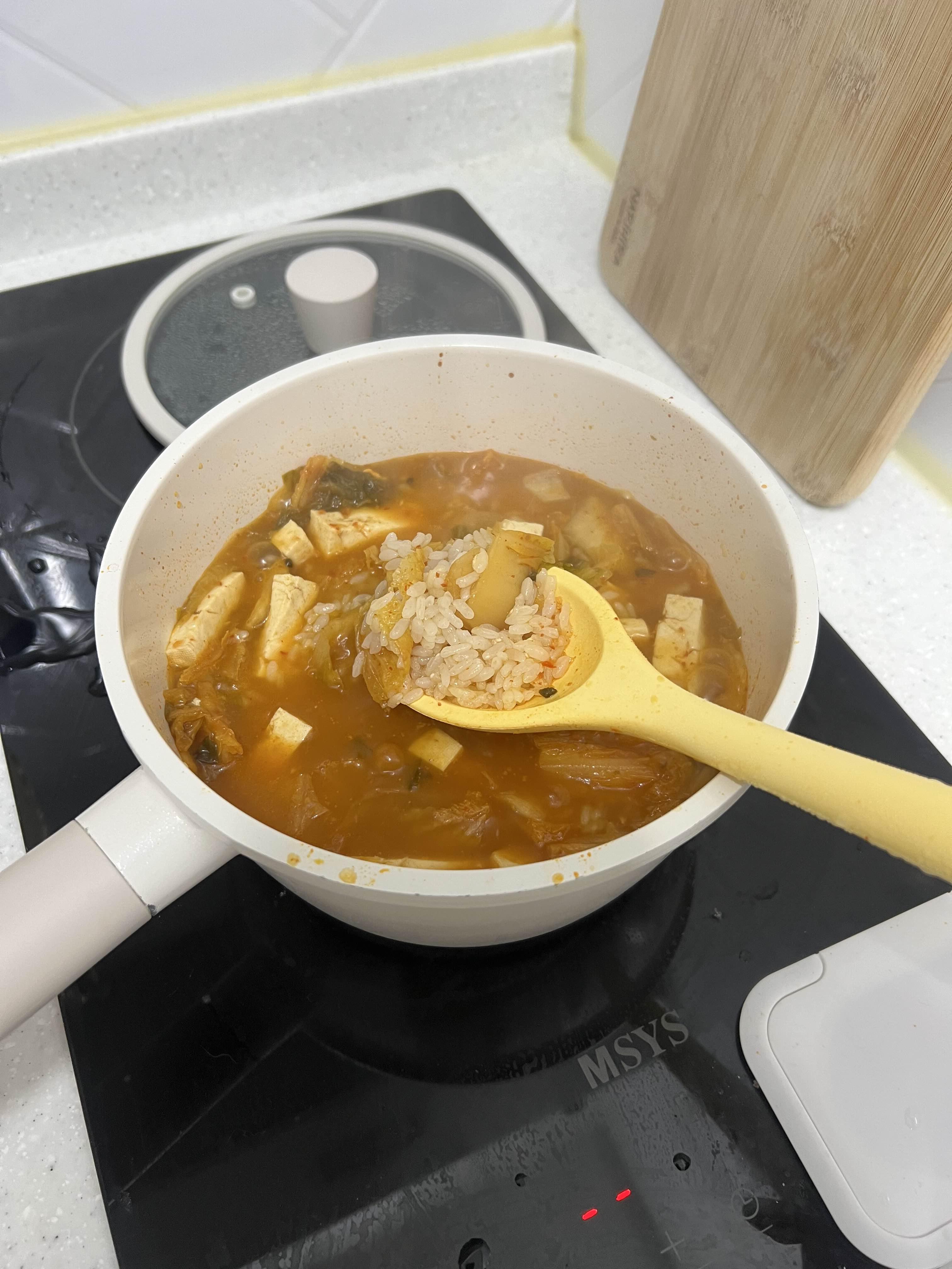 김치찌게에 밥을 넣은 비주얼이 되었네요.