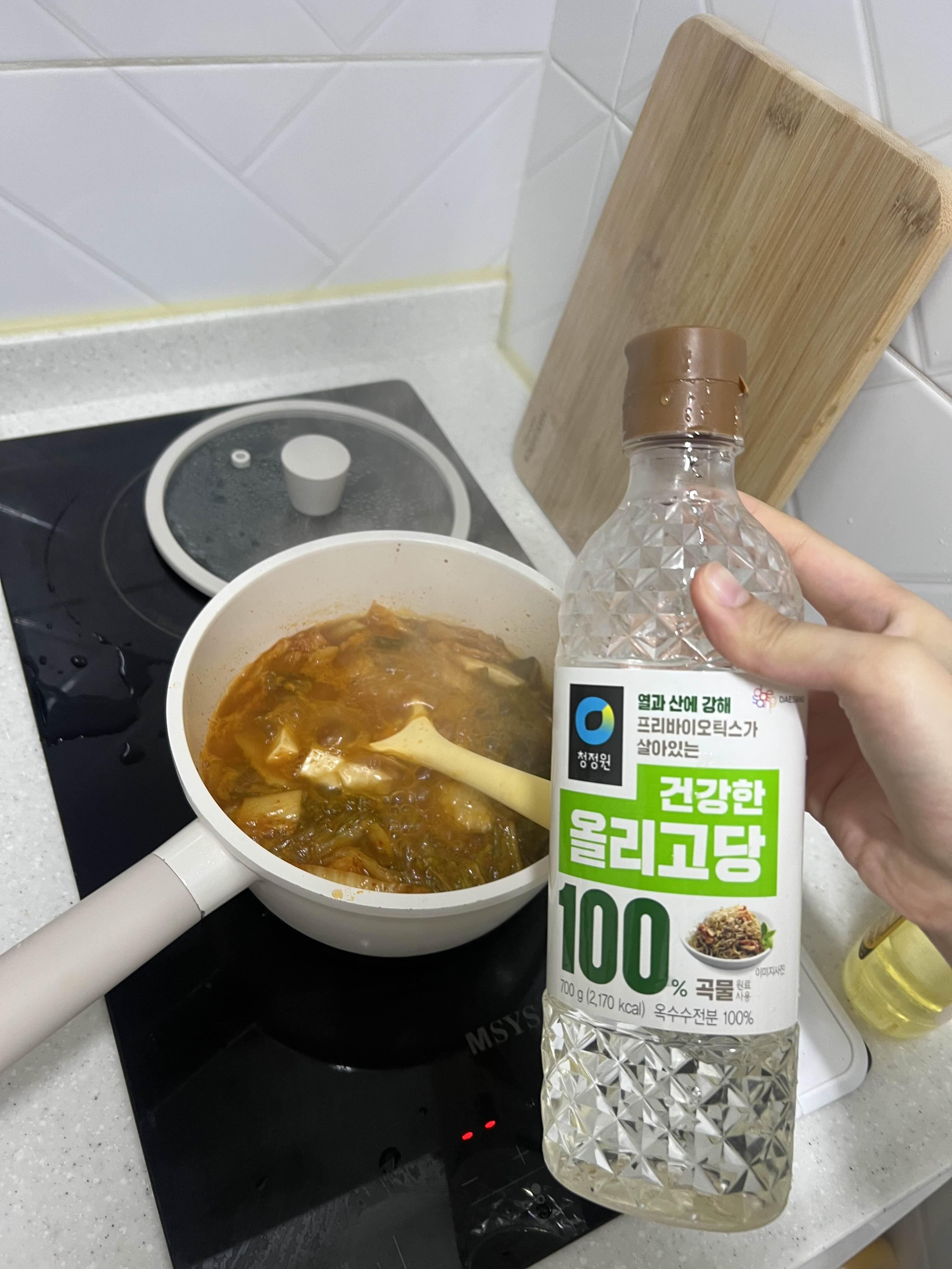 김치가 많이 셔서 올리고당으로 신맛을 조절해주었습니다.