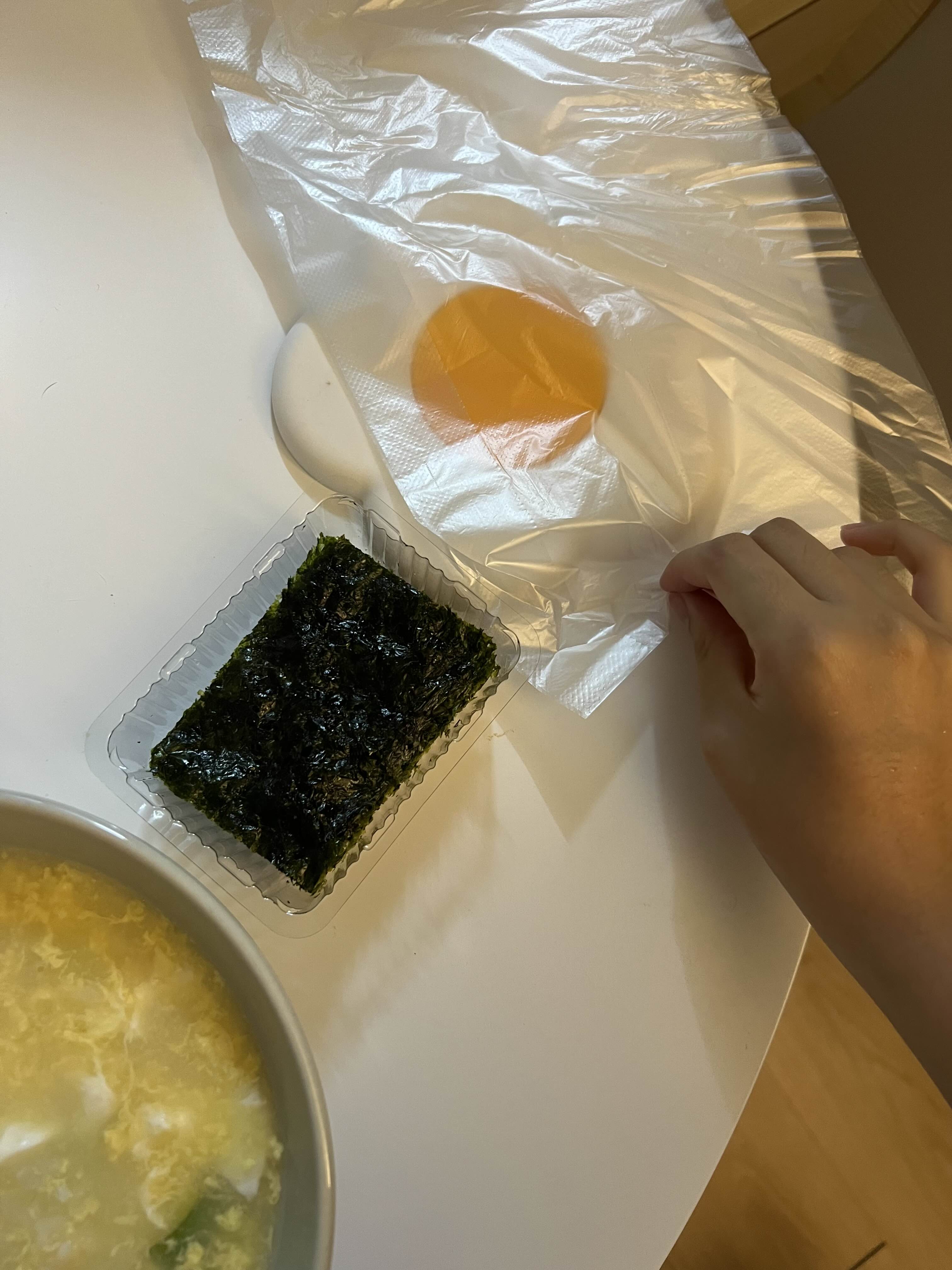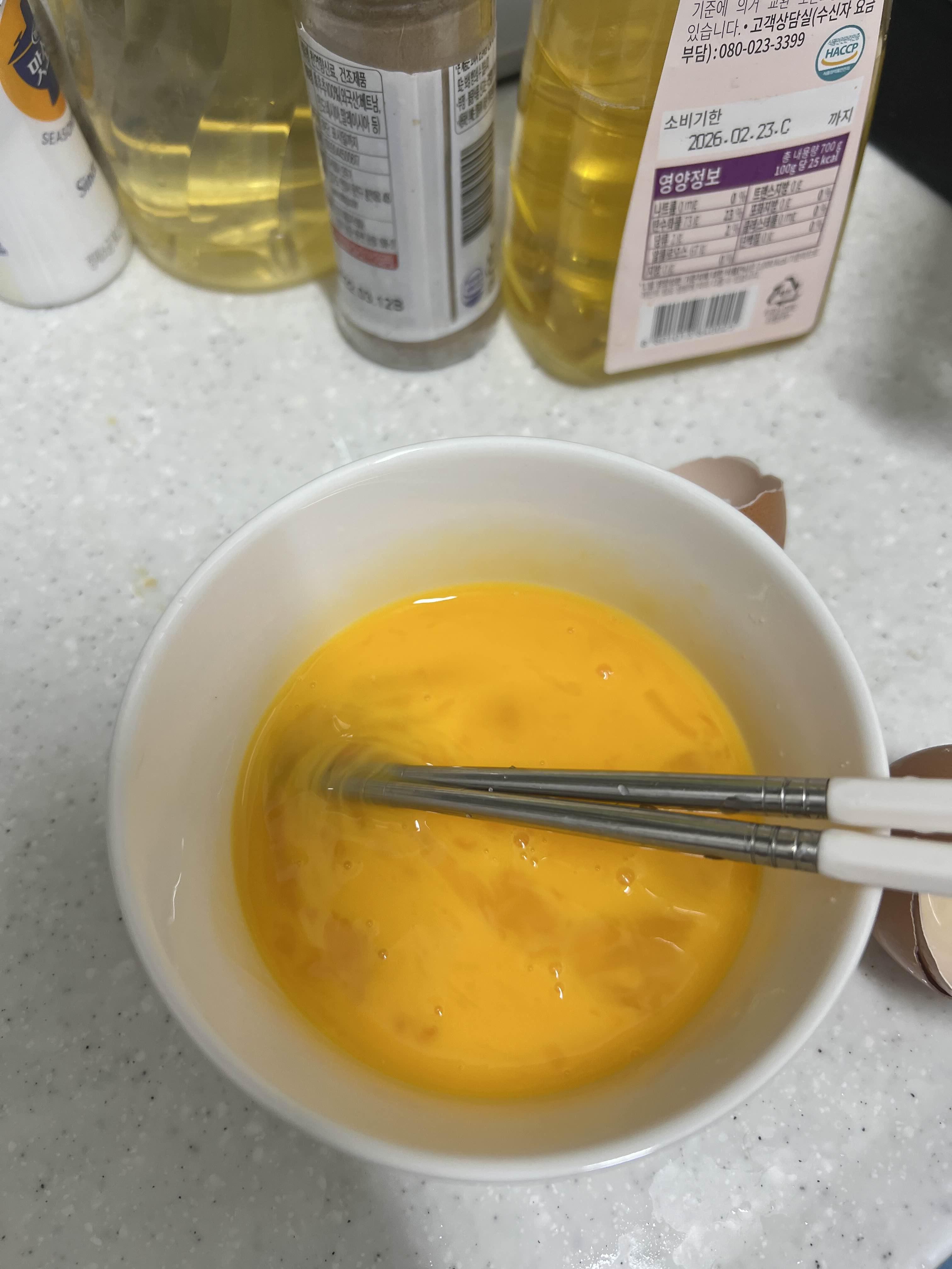 계란2개, 소금, 대파, 마늘, 참기름, 김가루(도시락김 대체가능), 식용유(카놀라유사용), 밥한공기