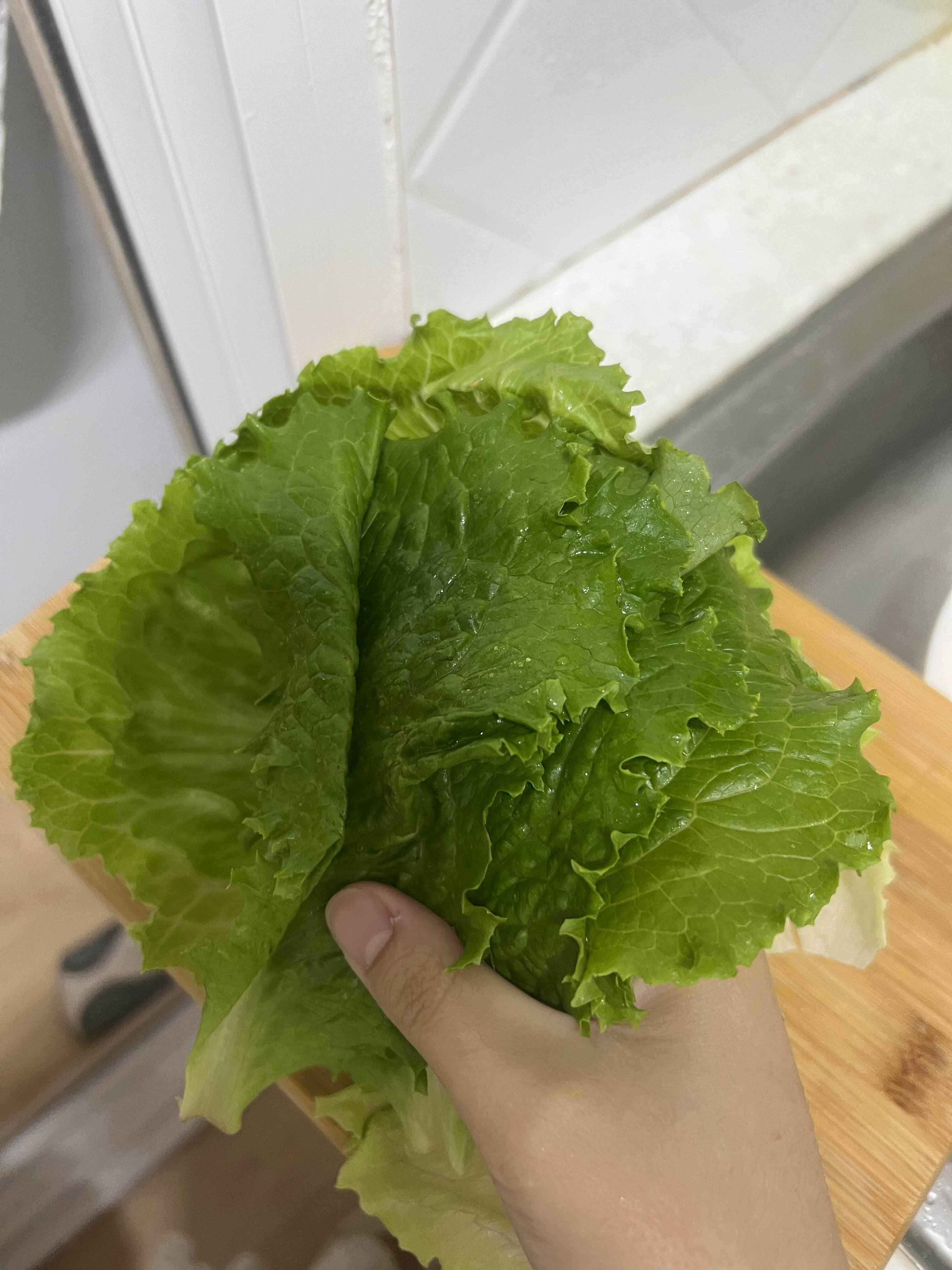 큰 양상추 잎 2장, 상추 3장, 토마토 5개 꺼네주고
