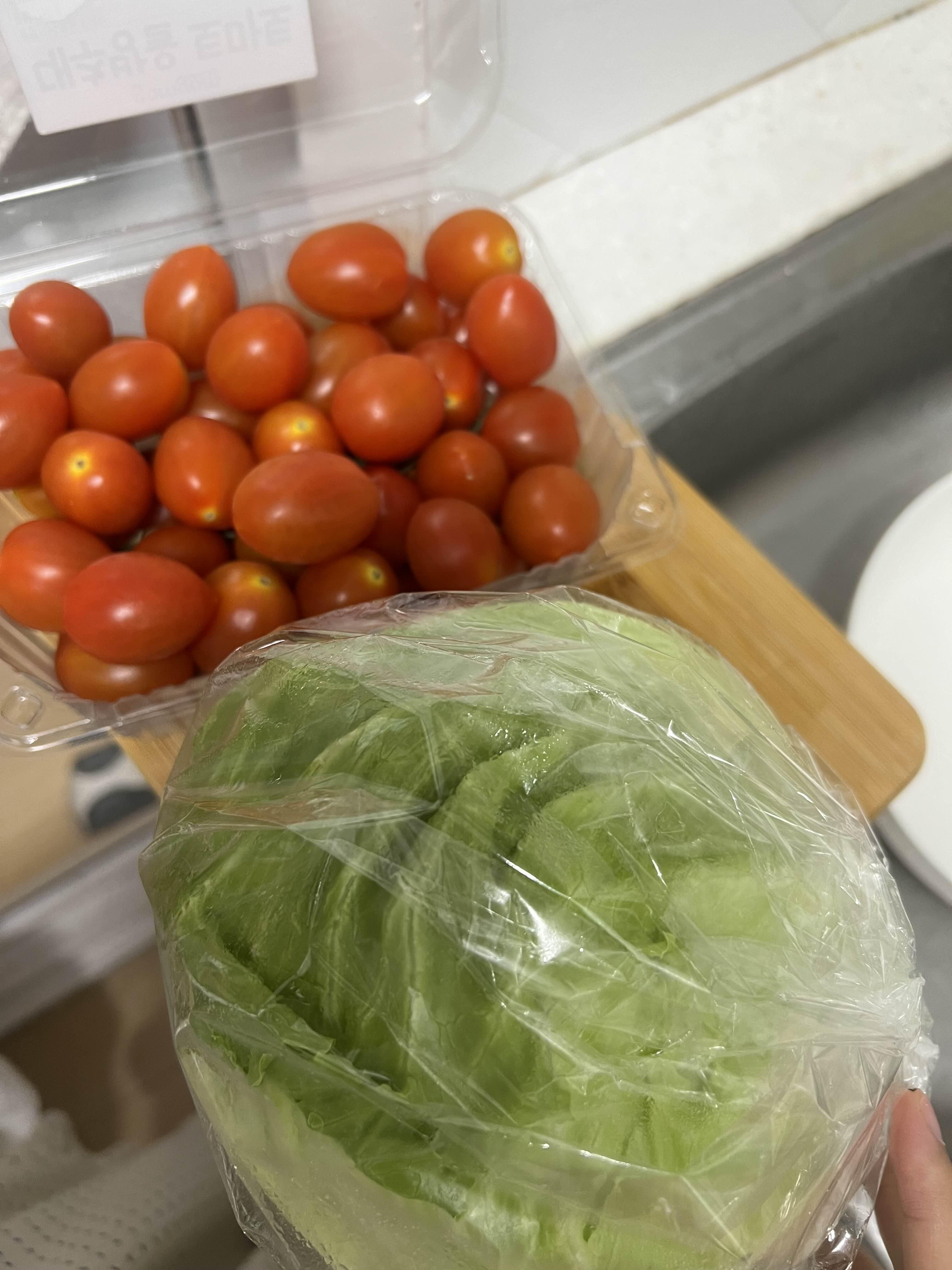 먼저 상추와 양상추, 방울토마토를 먹을만큼만 꺼네줍니다.