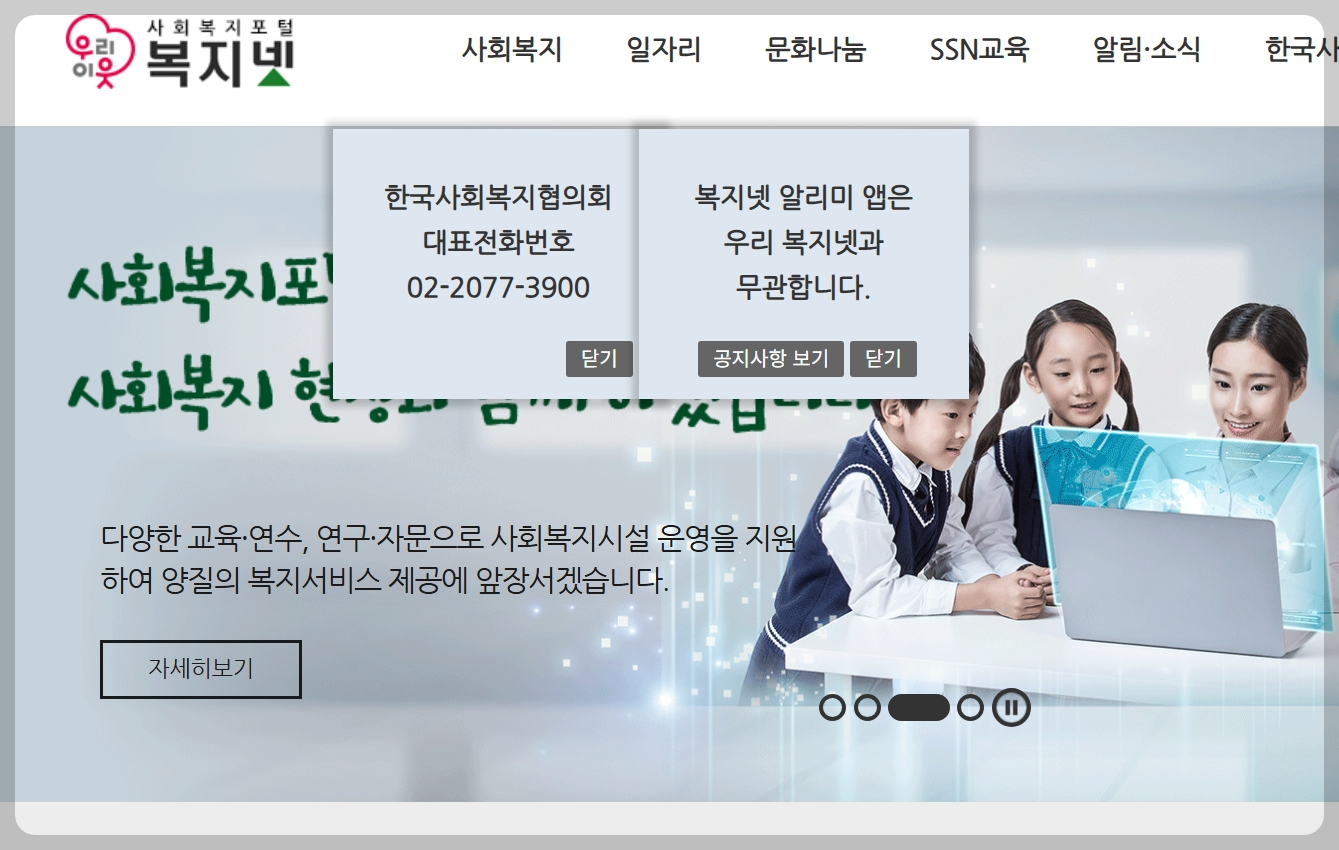위 링크를 클릭하면 아래 복지넷 홈페이지로 바로가기 됩니다.