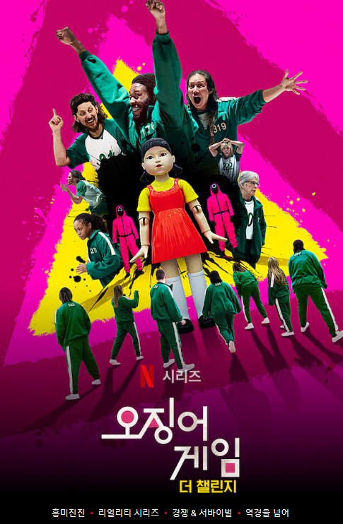 미국에서 만든 예능으로 오징어 게임의 세트장을 그대로 옮겨놓은듯 완벽하게 재현해놓았습니다.