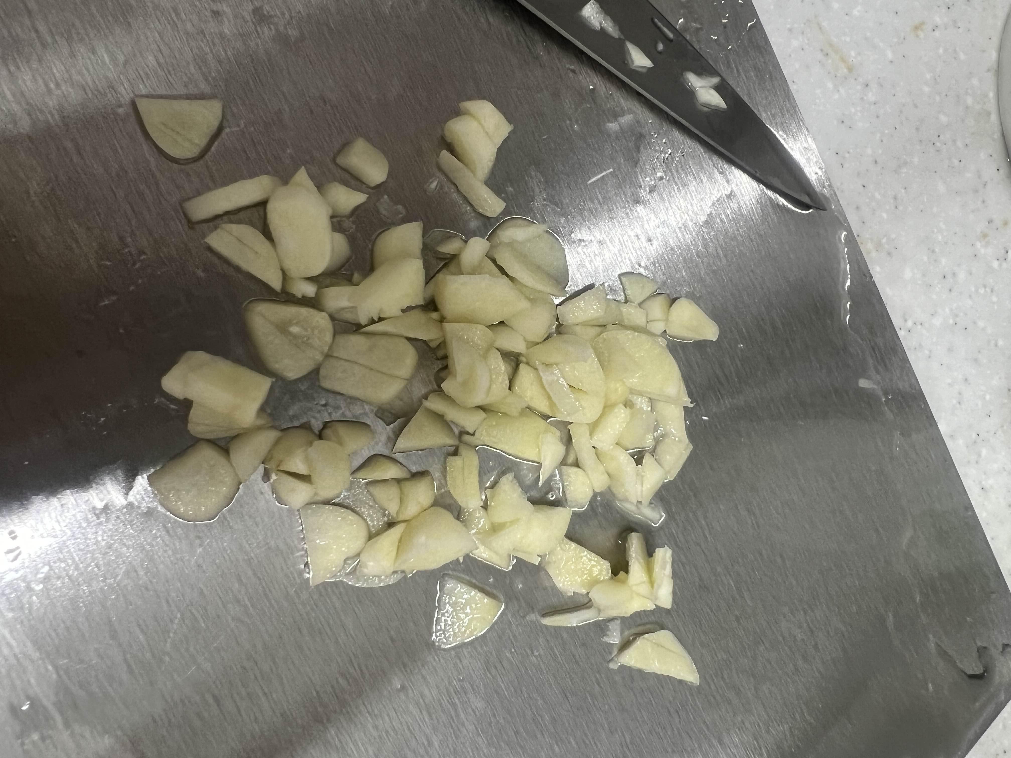 마늘이 노릇하게 구워지면 물기제거한 감자를 투하.