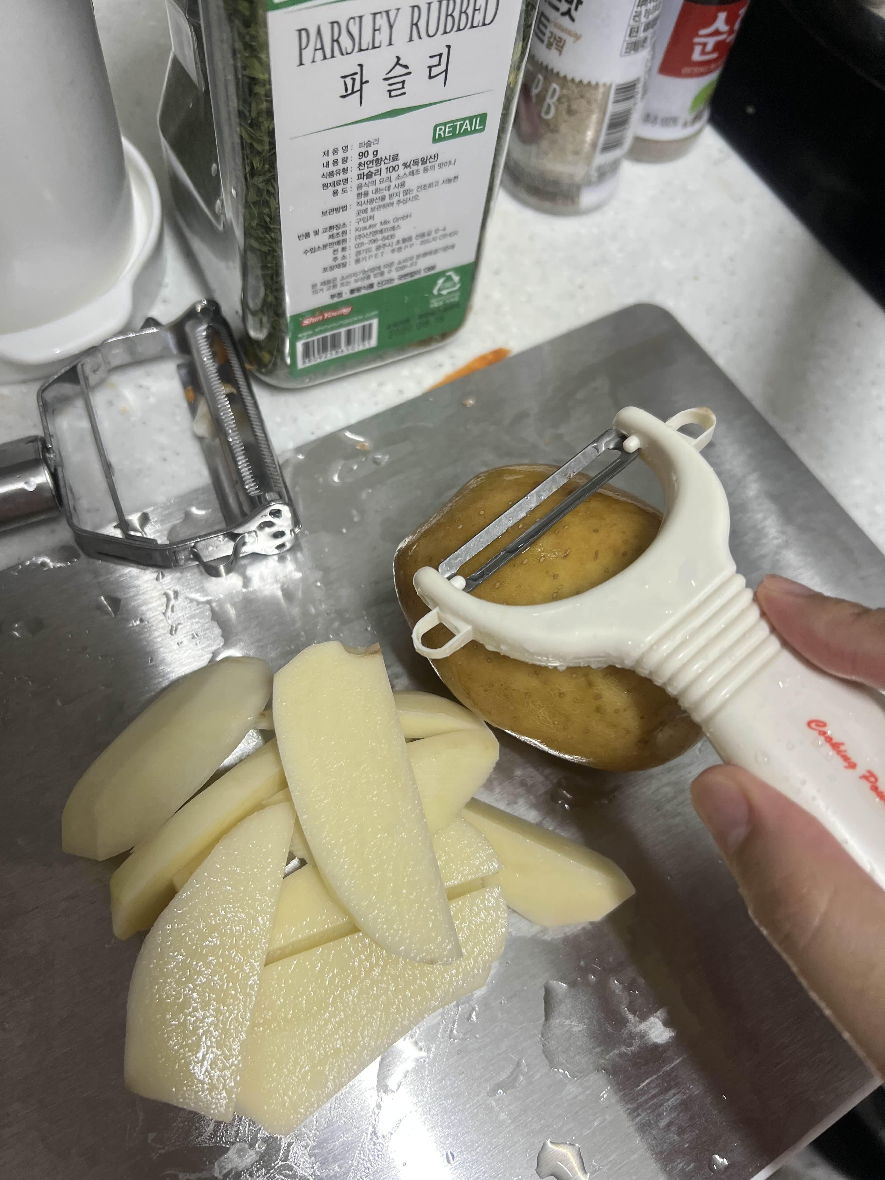 전분제거를 하지 않으면 후라이팬에 감자를 구울때 서로 붙어버려요~