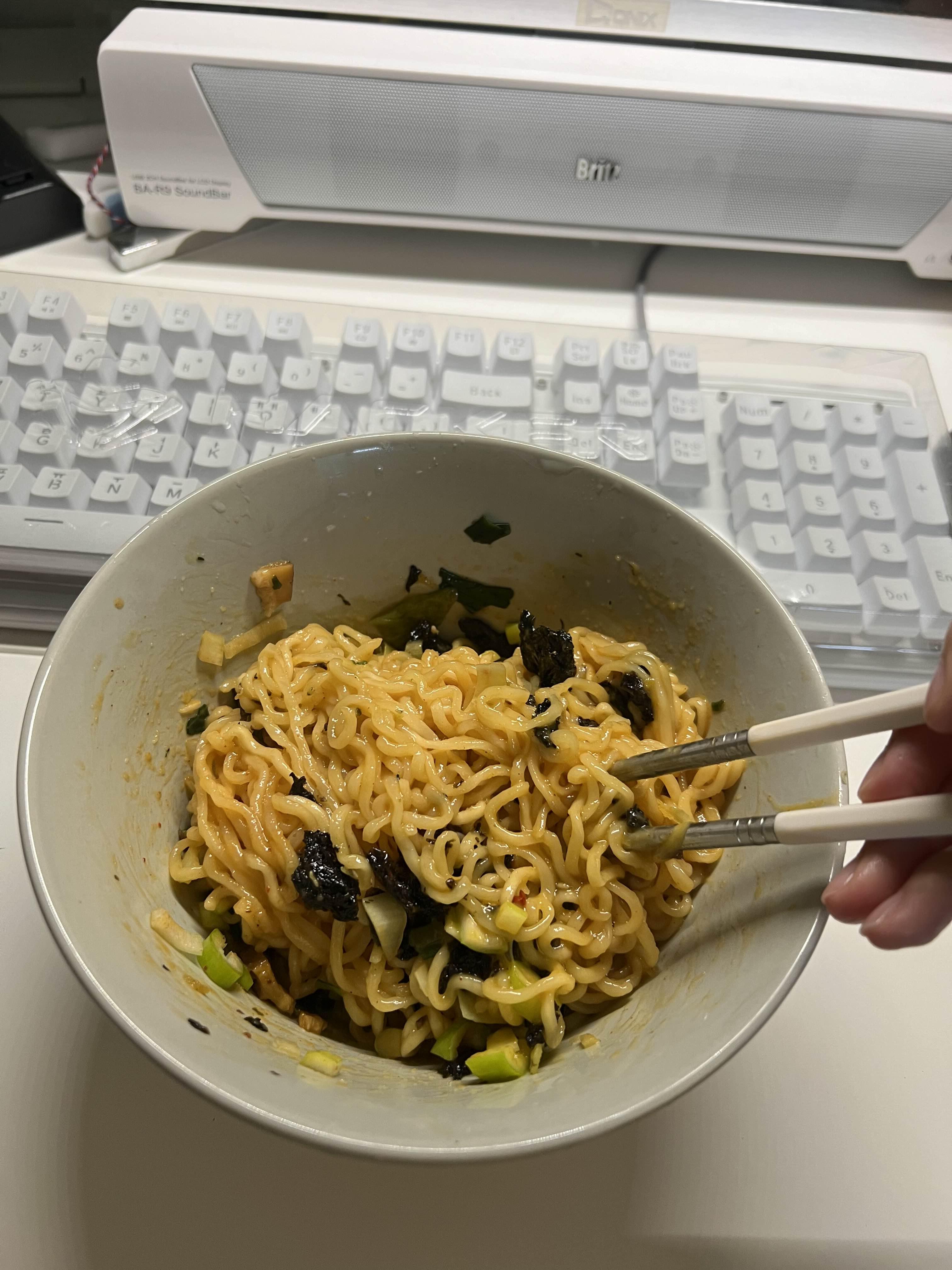 인스타에서 신라면으로 아부라소바 만드는 법이 올라온 영상을 보고 따라해봤어요.
