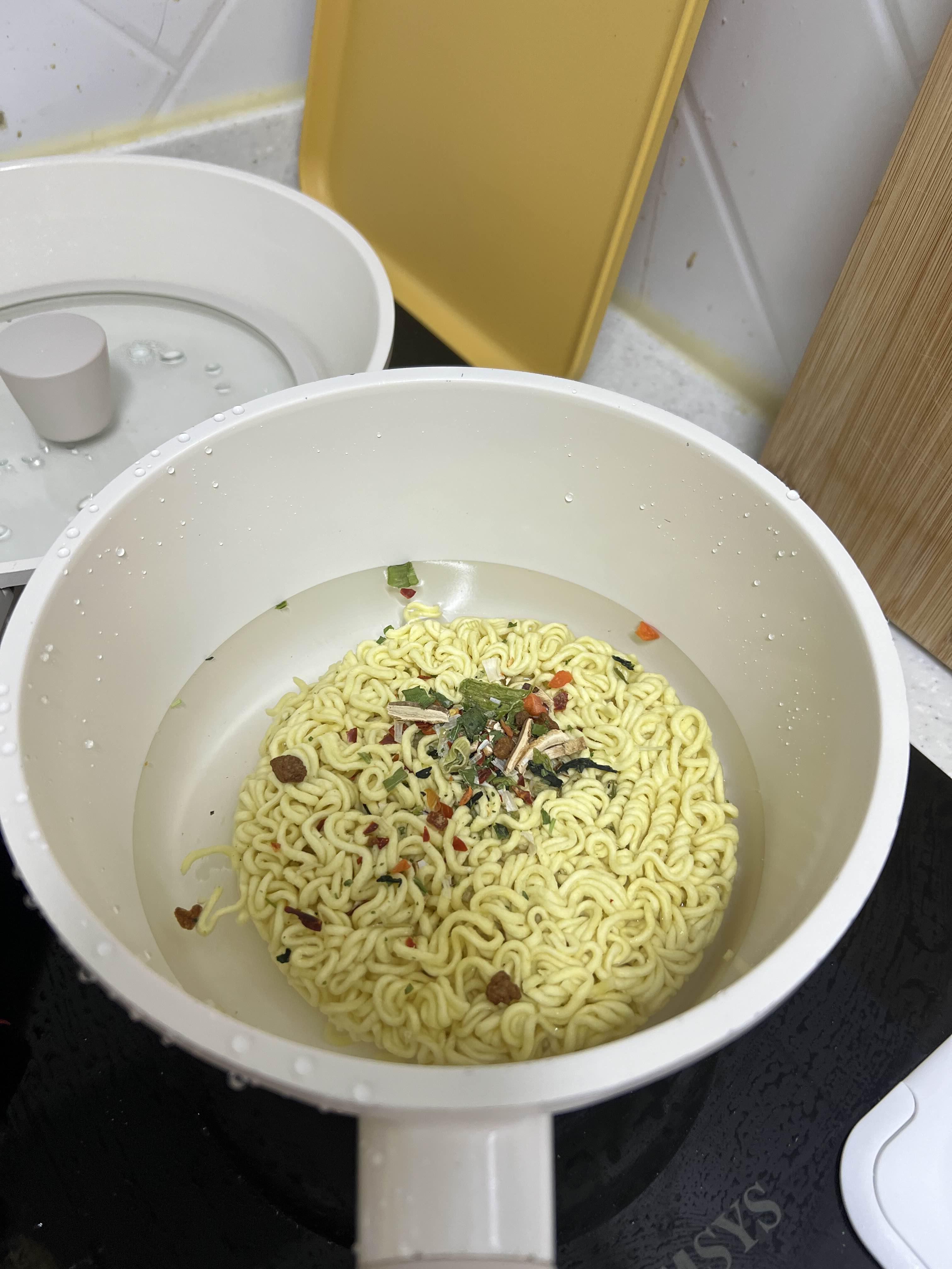먼저 물에 라면과 후레이크를 넣고 끓여줍니다.