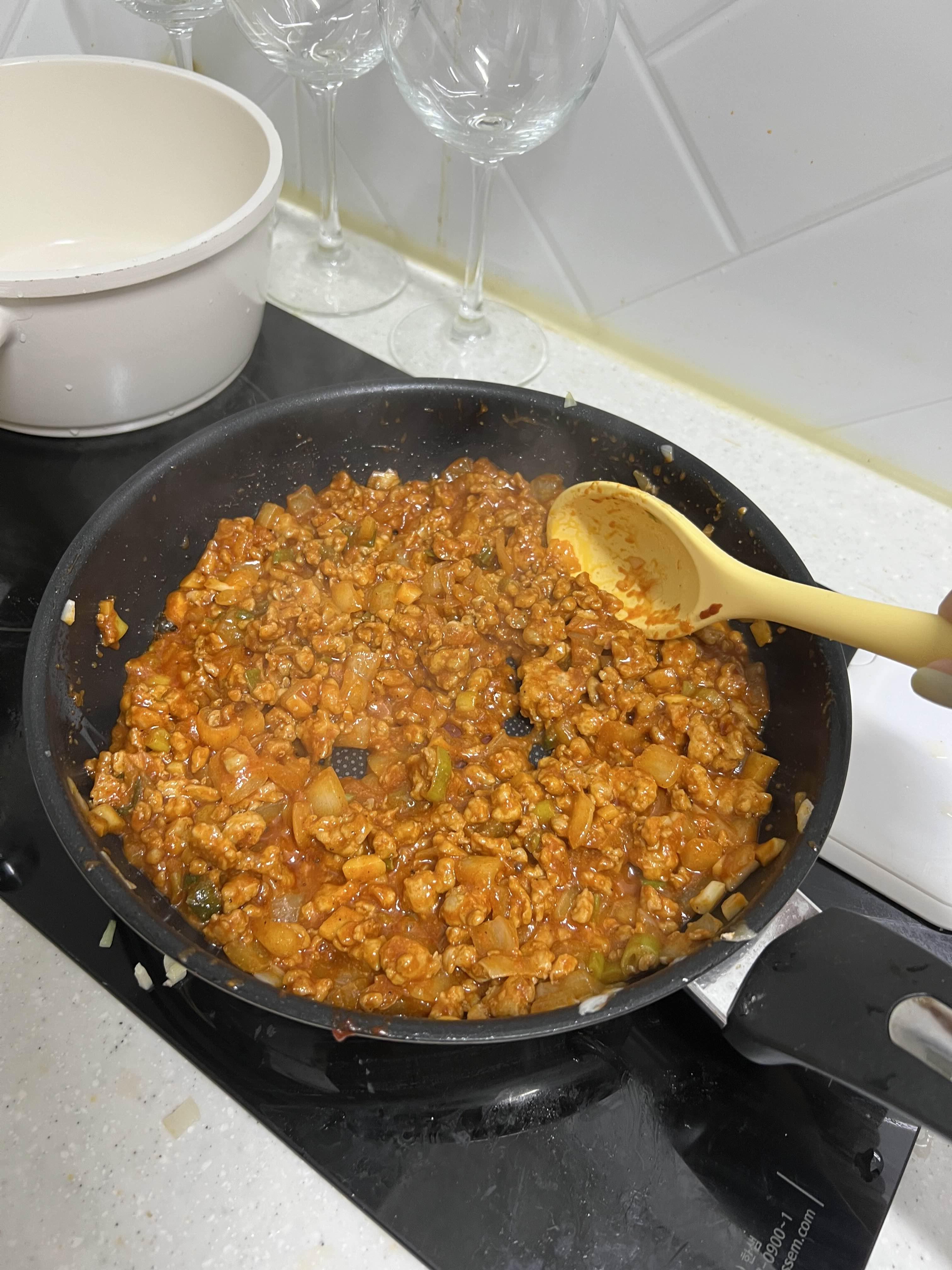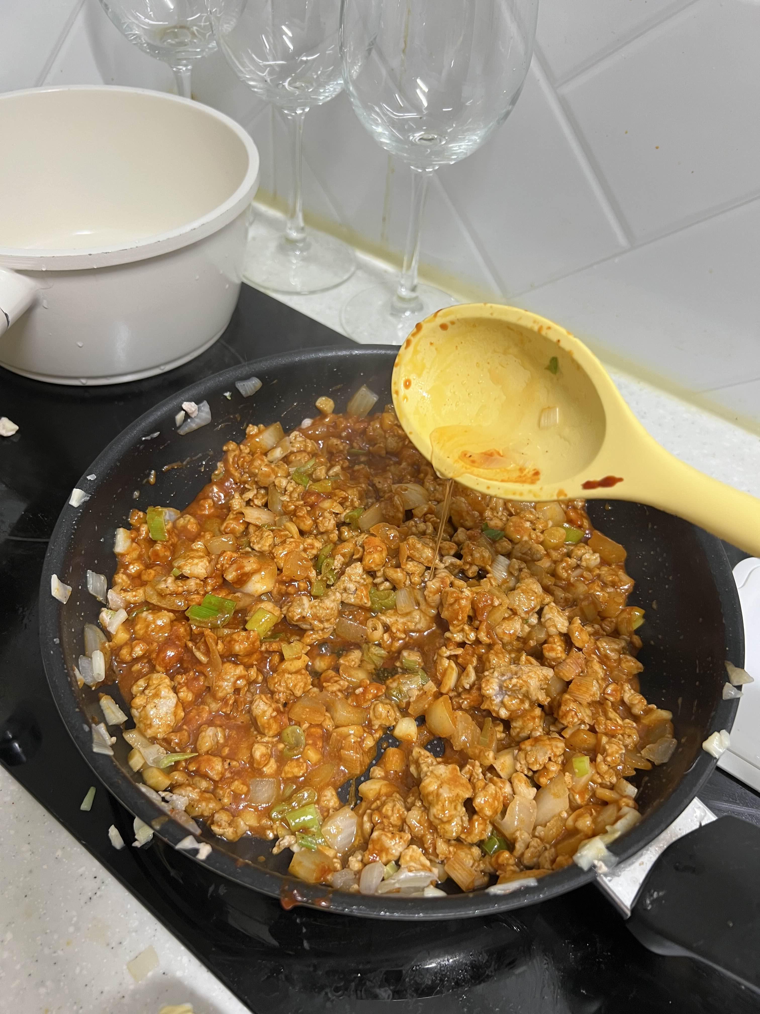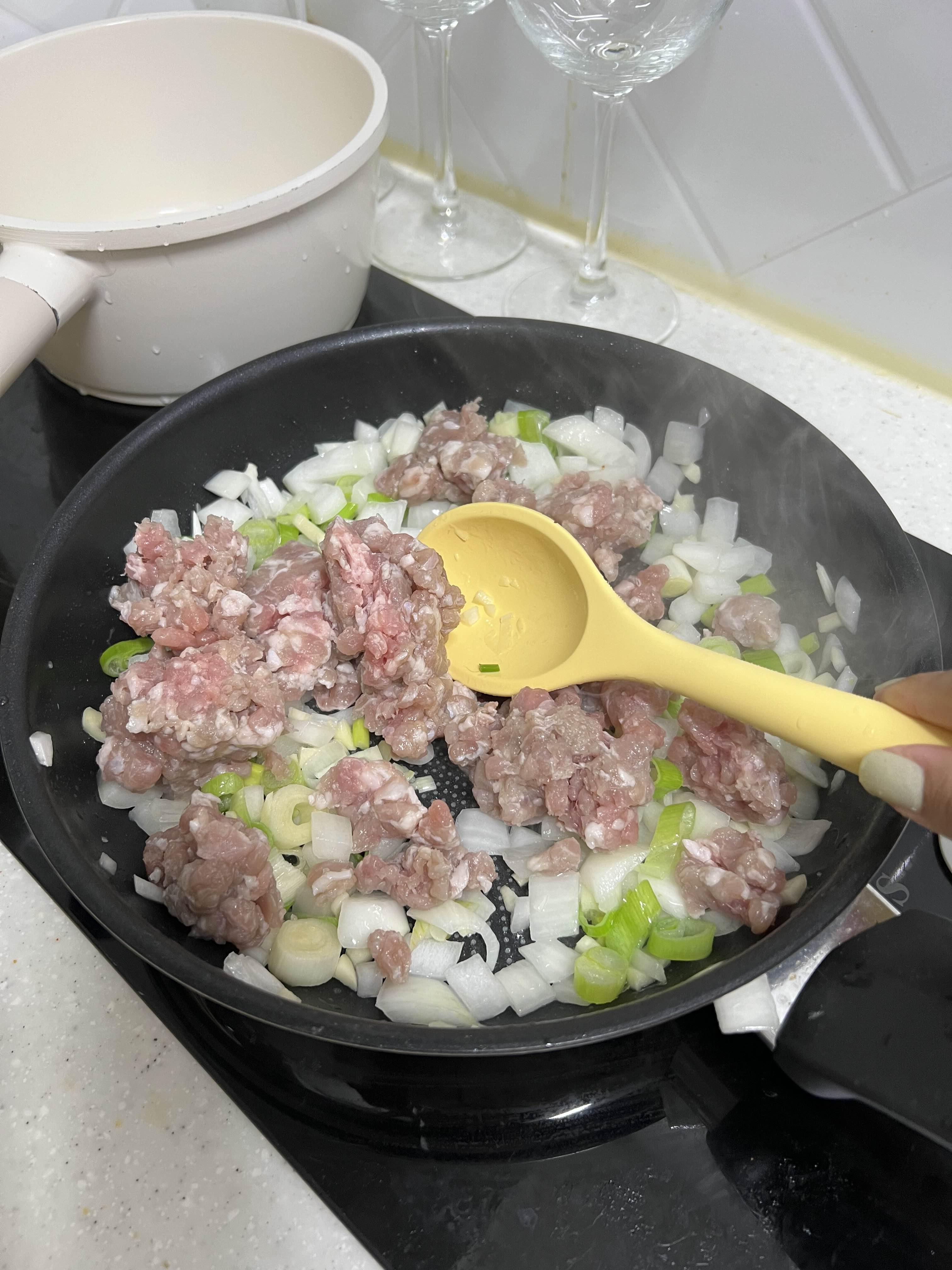 다짐육 200g, 미림(혹은 맛술), 고추장, 된장(쌈장), 알룰로스(설탕대신), 양파 반개, 파 한대, 다진마늘1개, 식용유