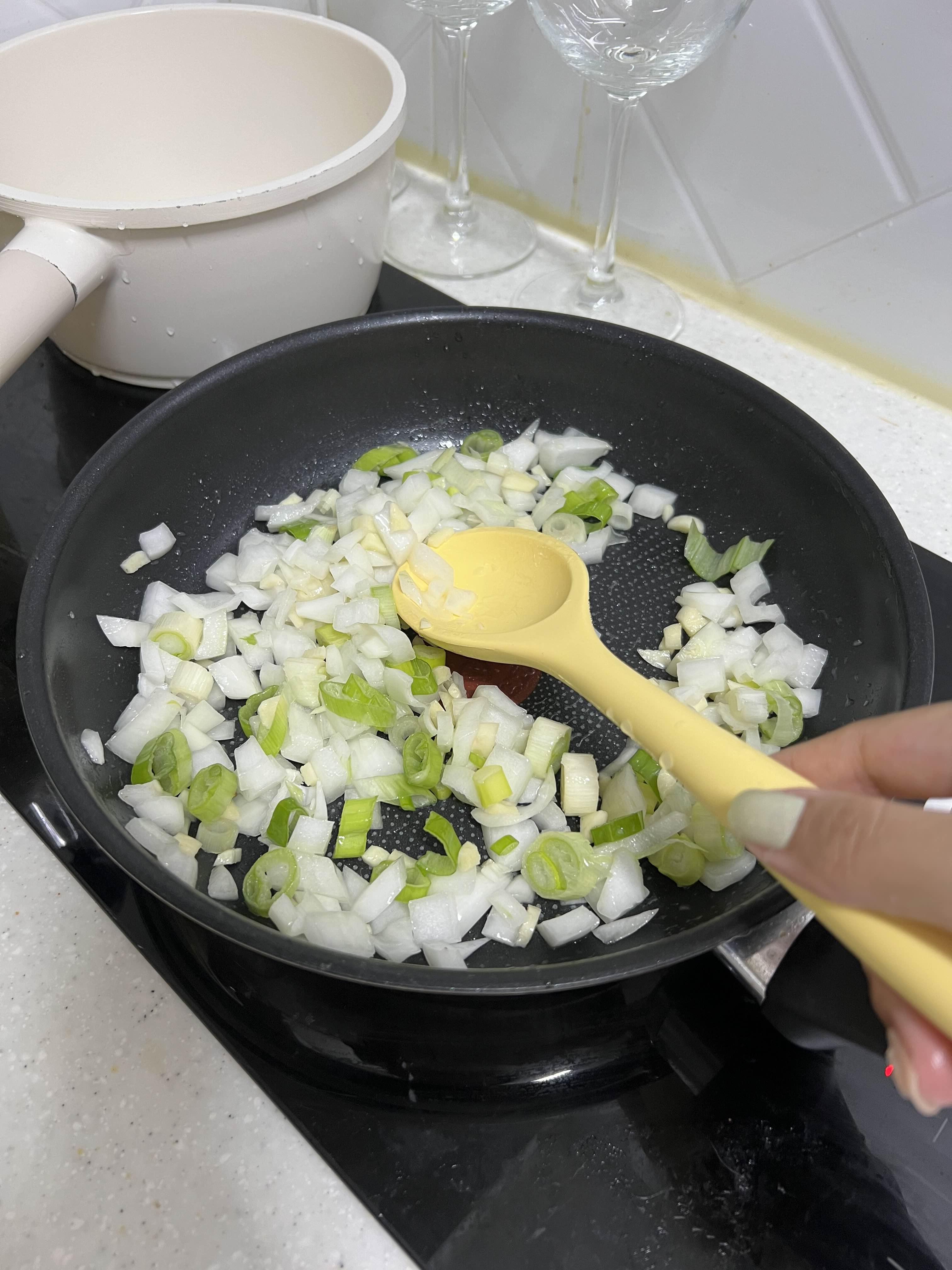 팬에 기름 두르고 자른 야채들 볶아줍니다.