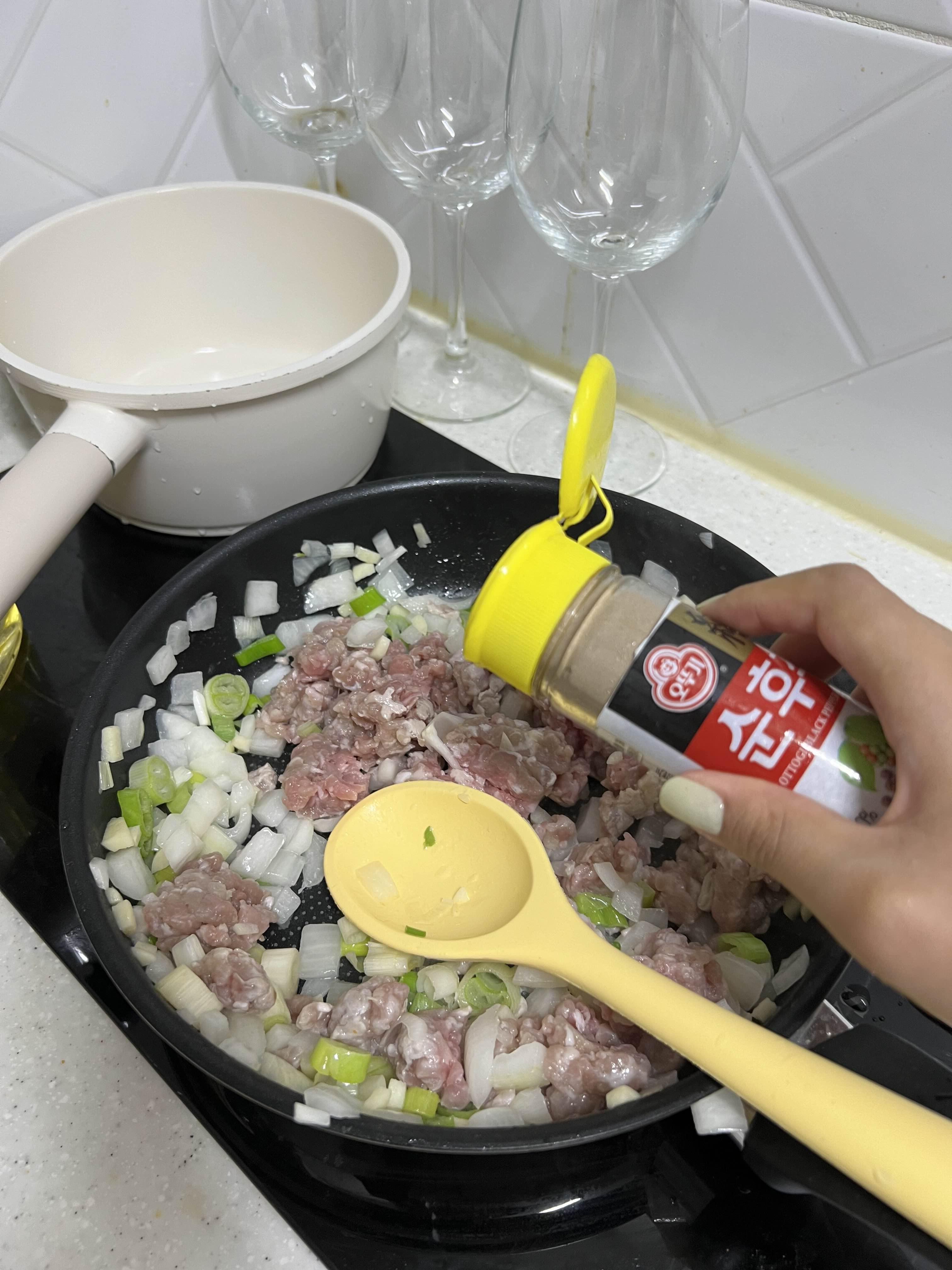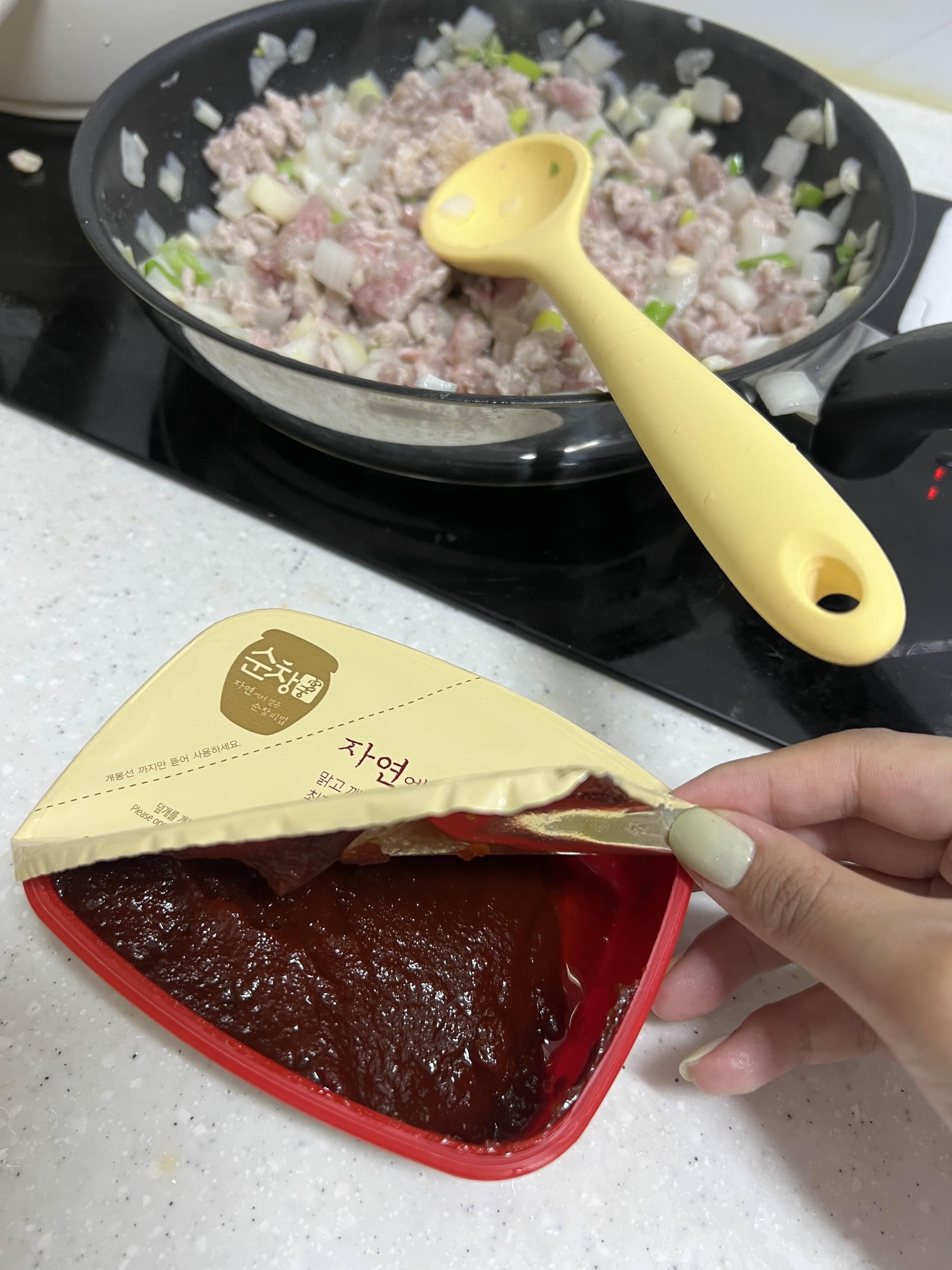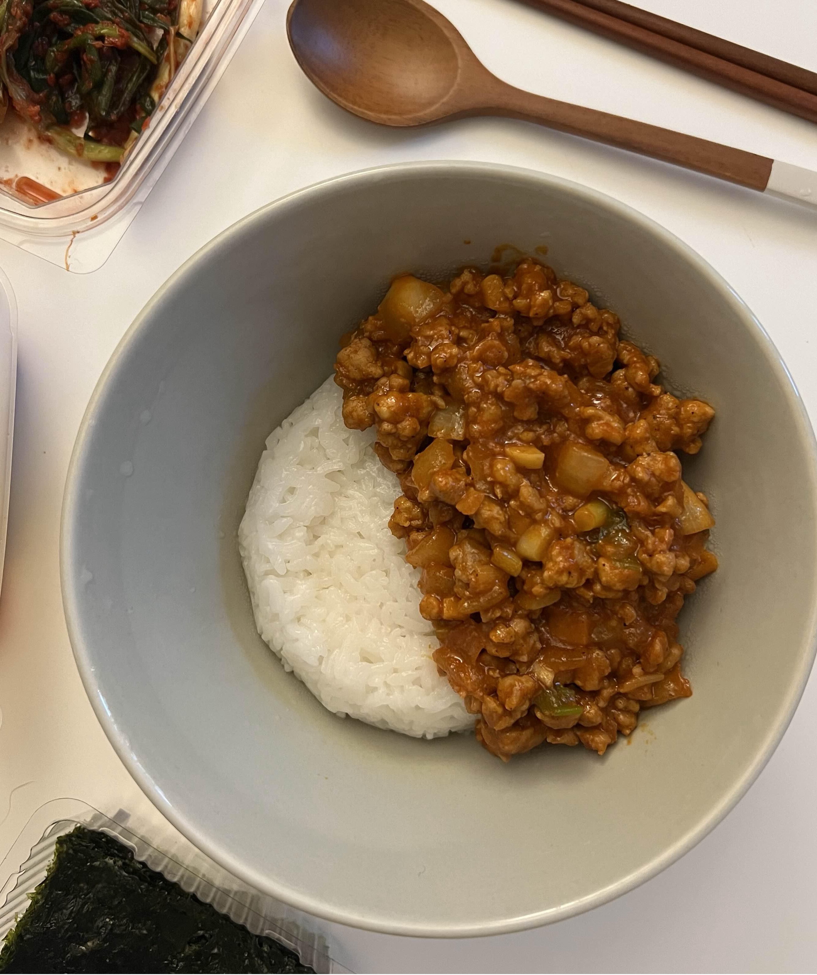 오늘은 돼지고기 다짐육으로 고추장볶음 만들어 밥에 올려 먹었는데, 너무 맛있어서 레시피 공유해요
