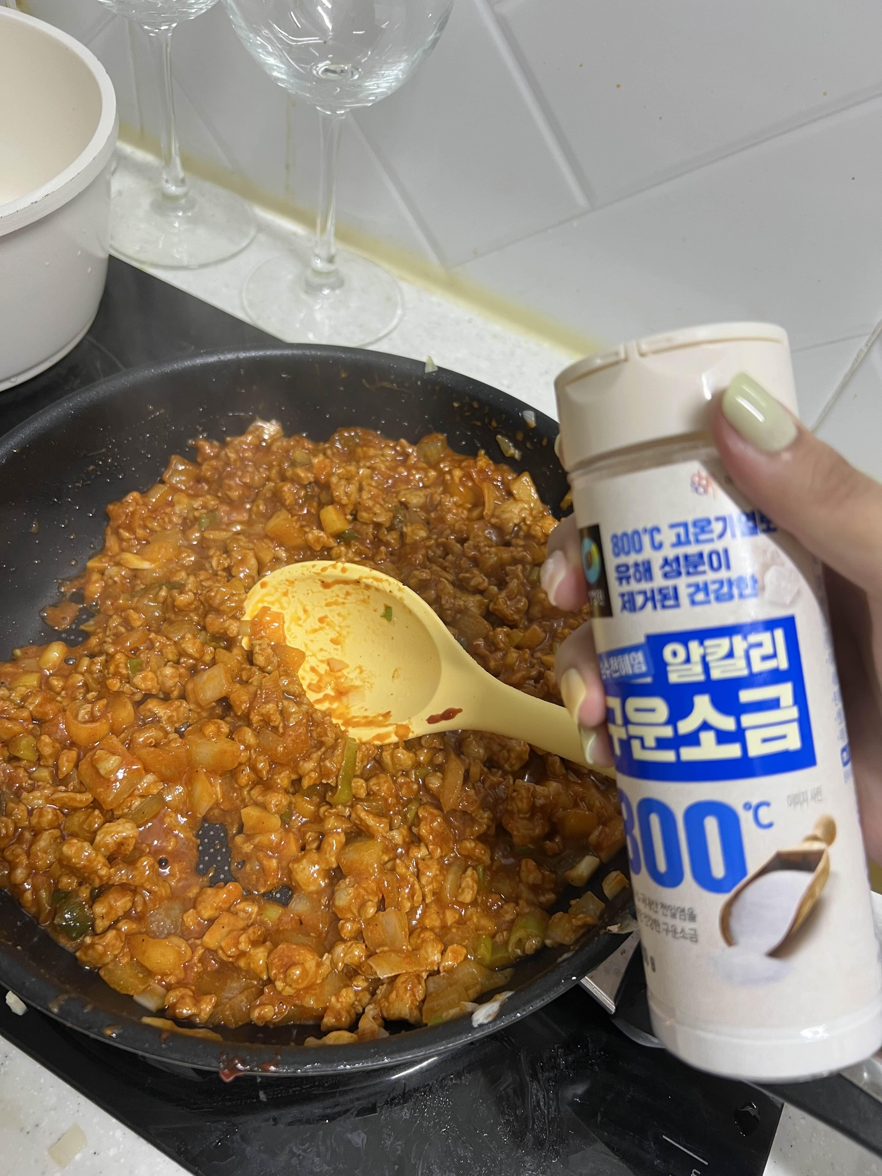 한입 먹어보고 부족한 간은 소금으로 마무리 해줍니다.