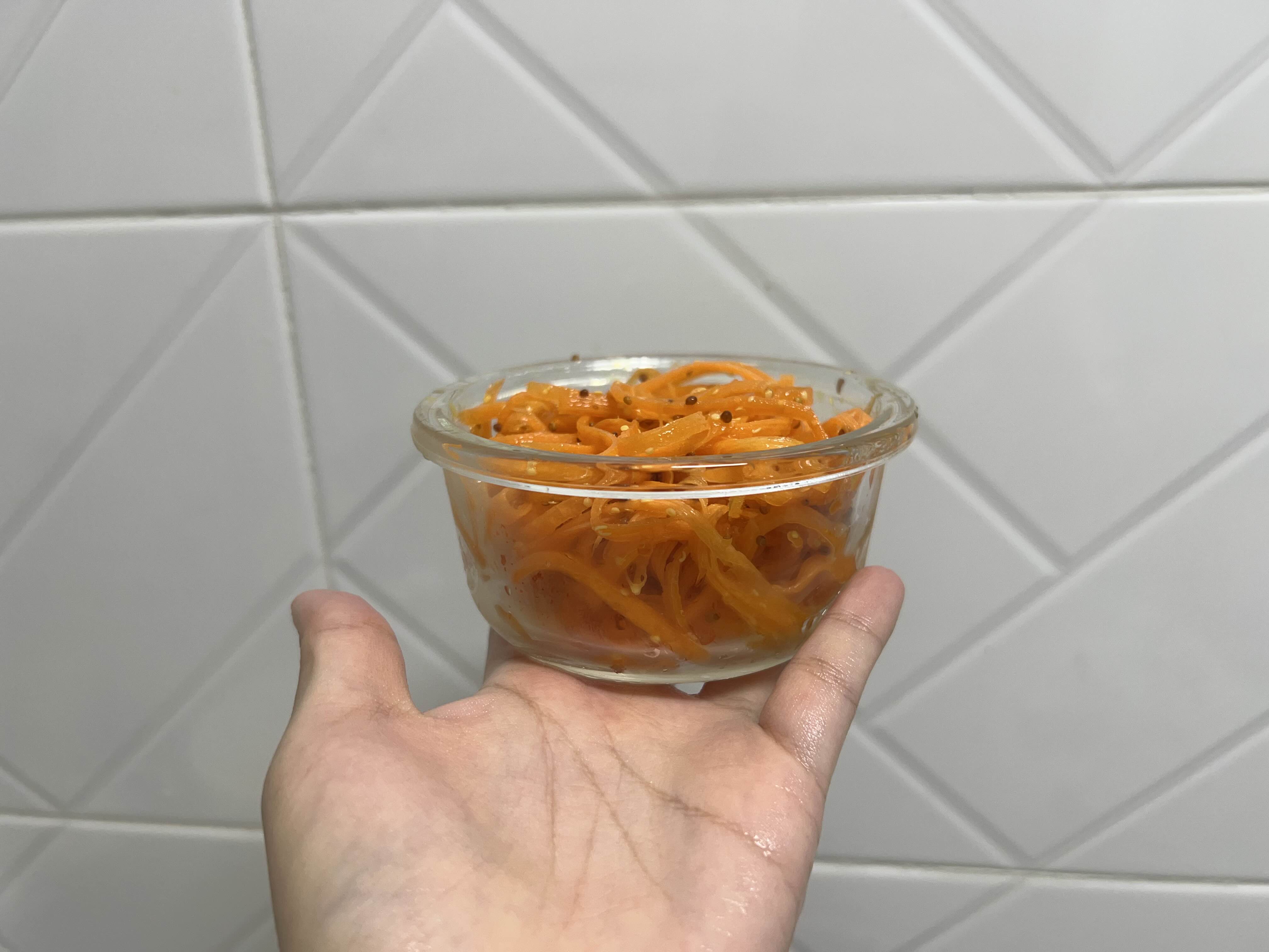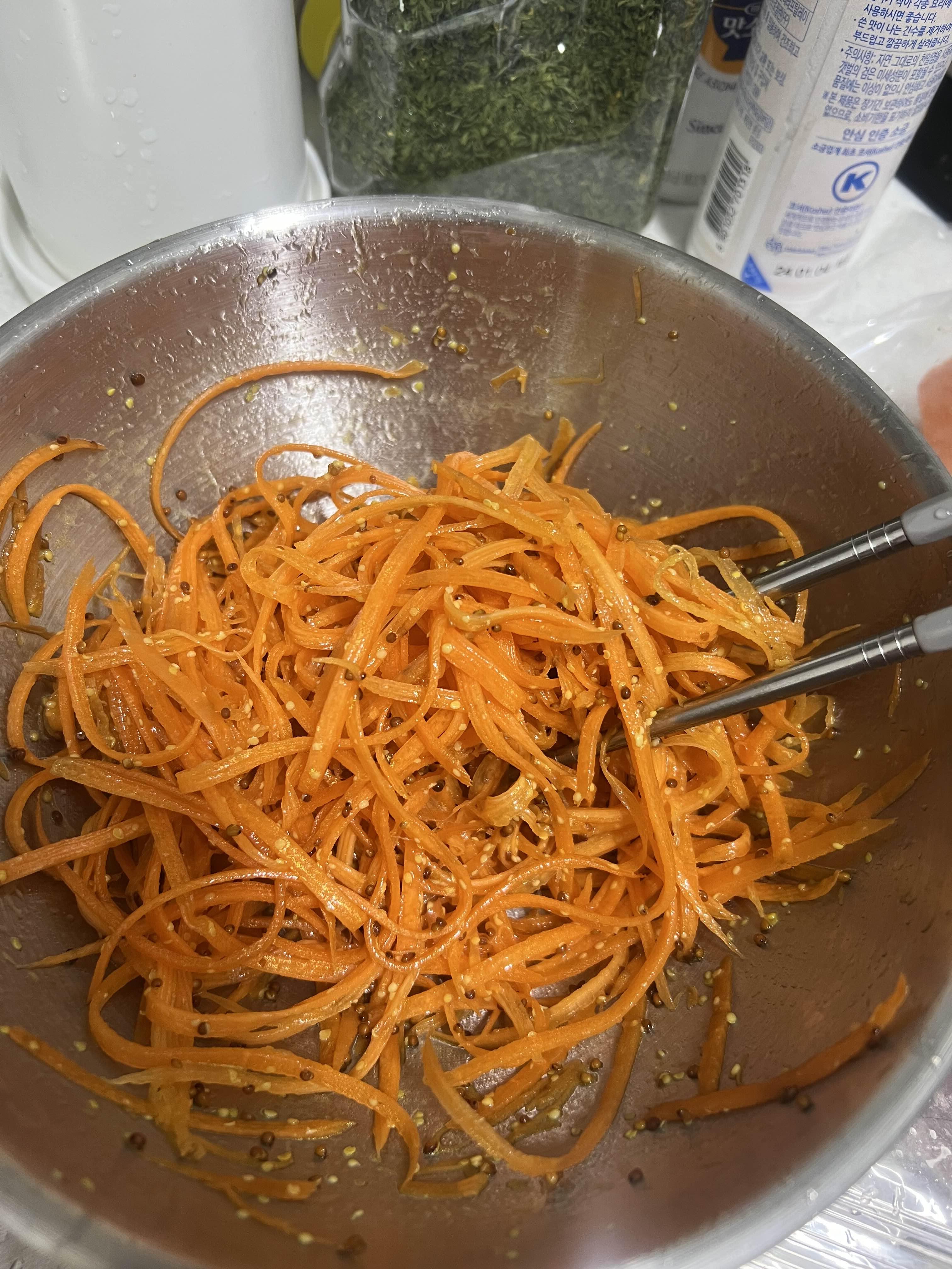 머스타드맛과 레몬으로 상큼하면서도 당근의 본래 단맛과 알룰로스로 달달하고 올리브오일로 고소한 느낌이 드는 맛있는 당근반찬이에요!