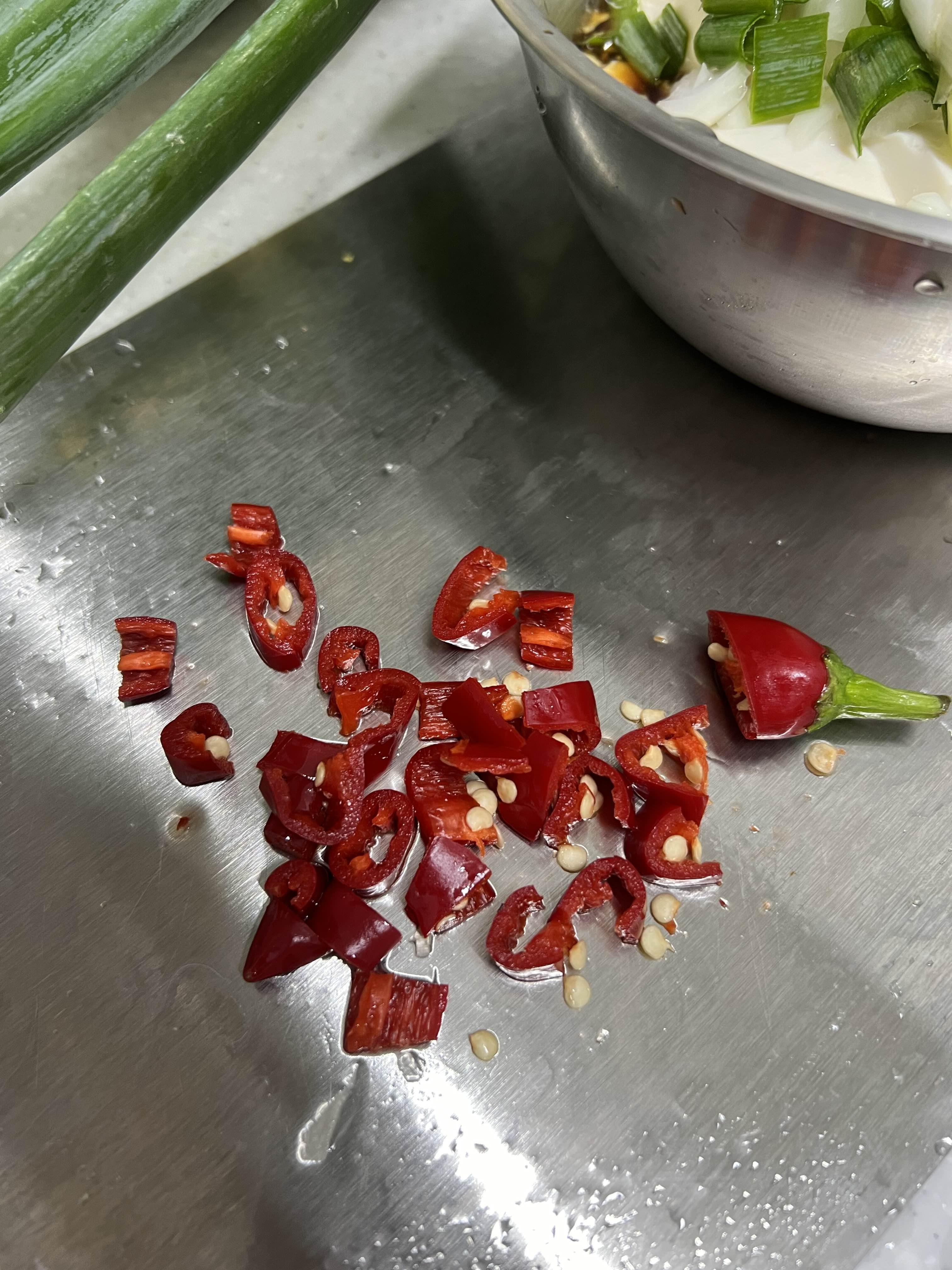 홍고추 하나 잘게 썰어주고 담아주면 끝 !