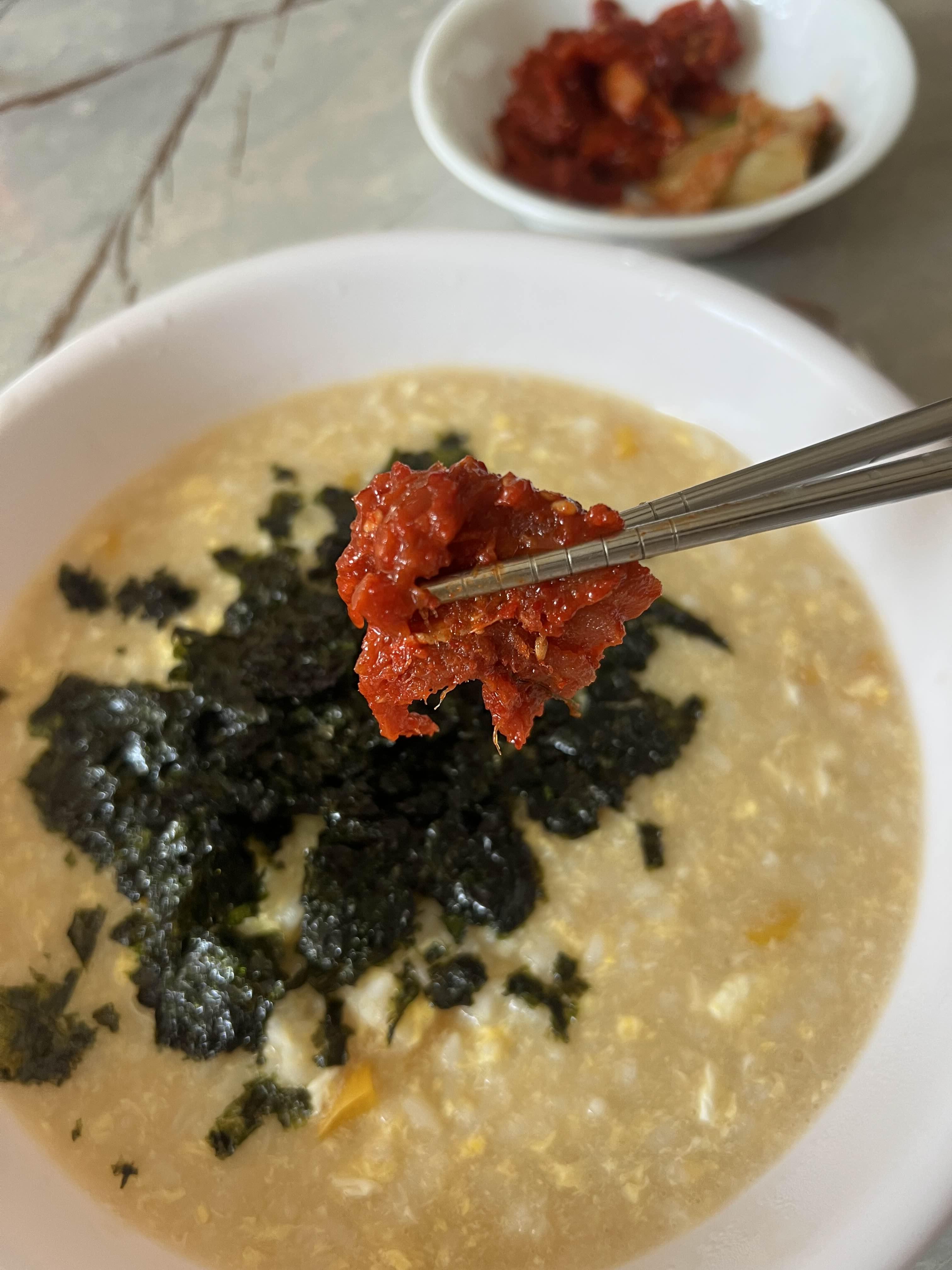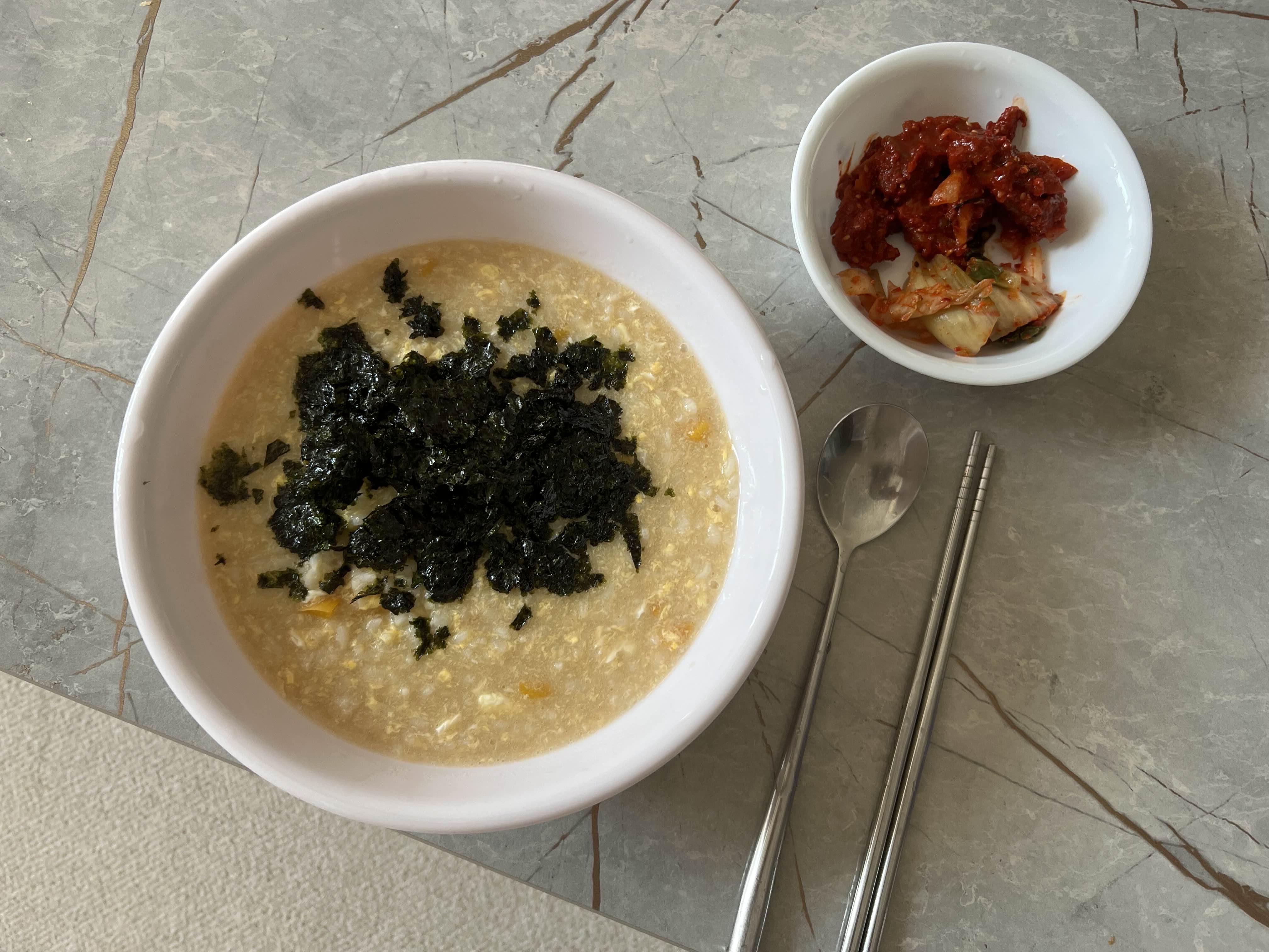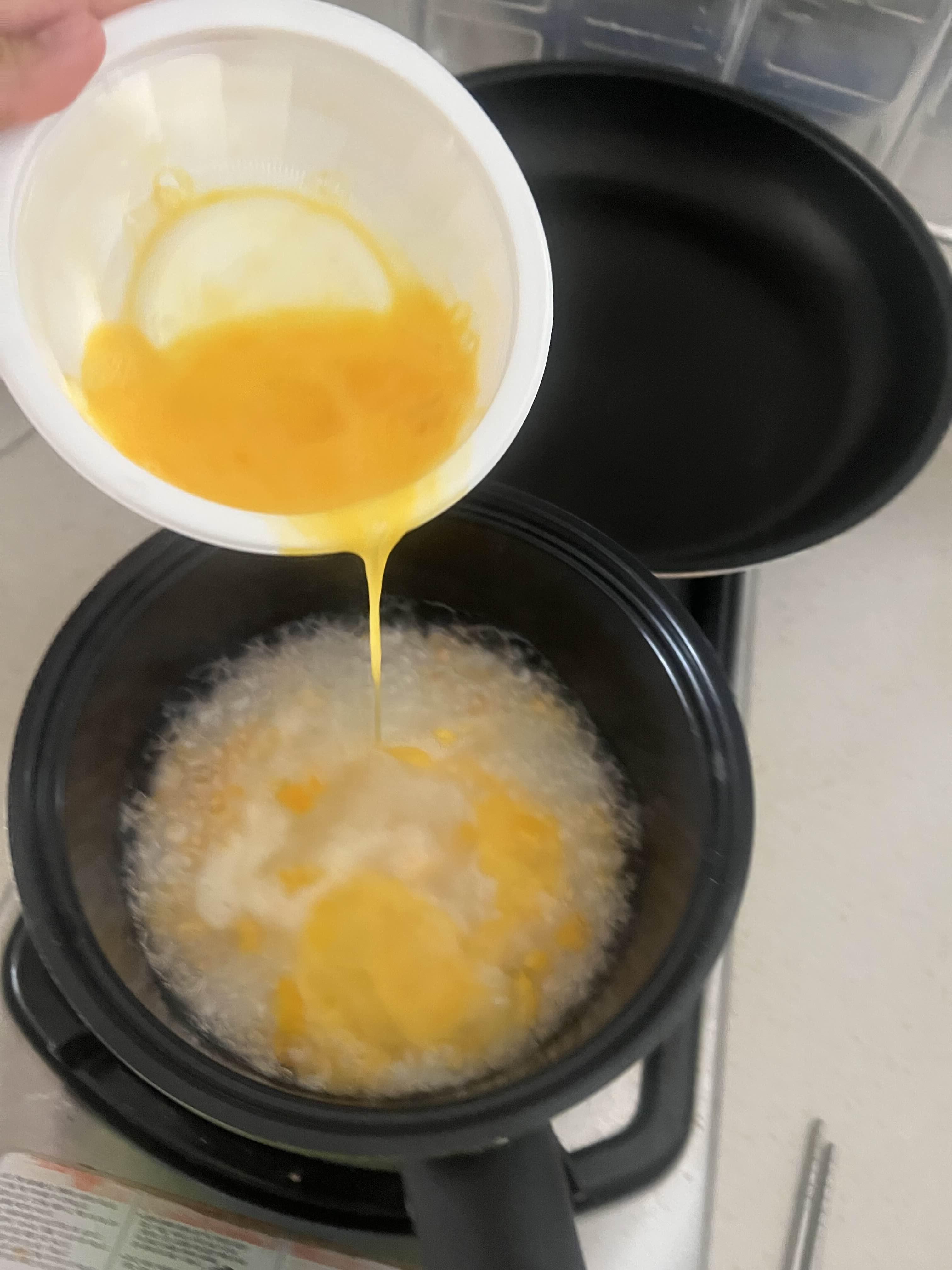 집에 재료가 없어서 파프리카로 계란죽 만들었어요.