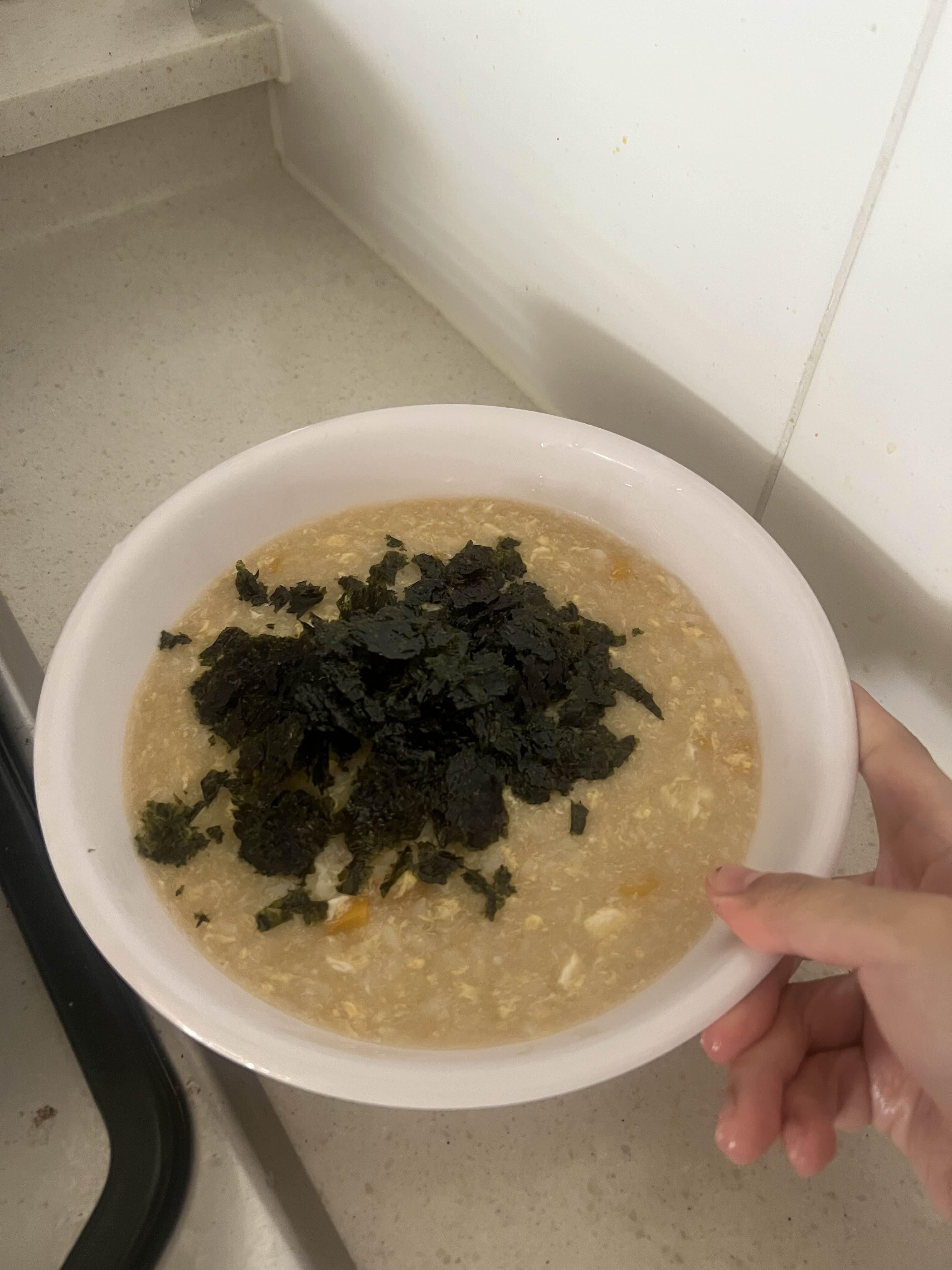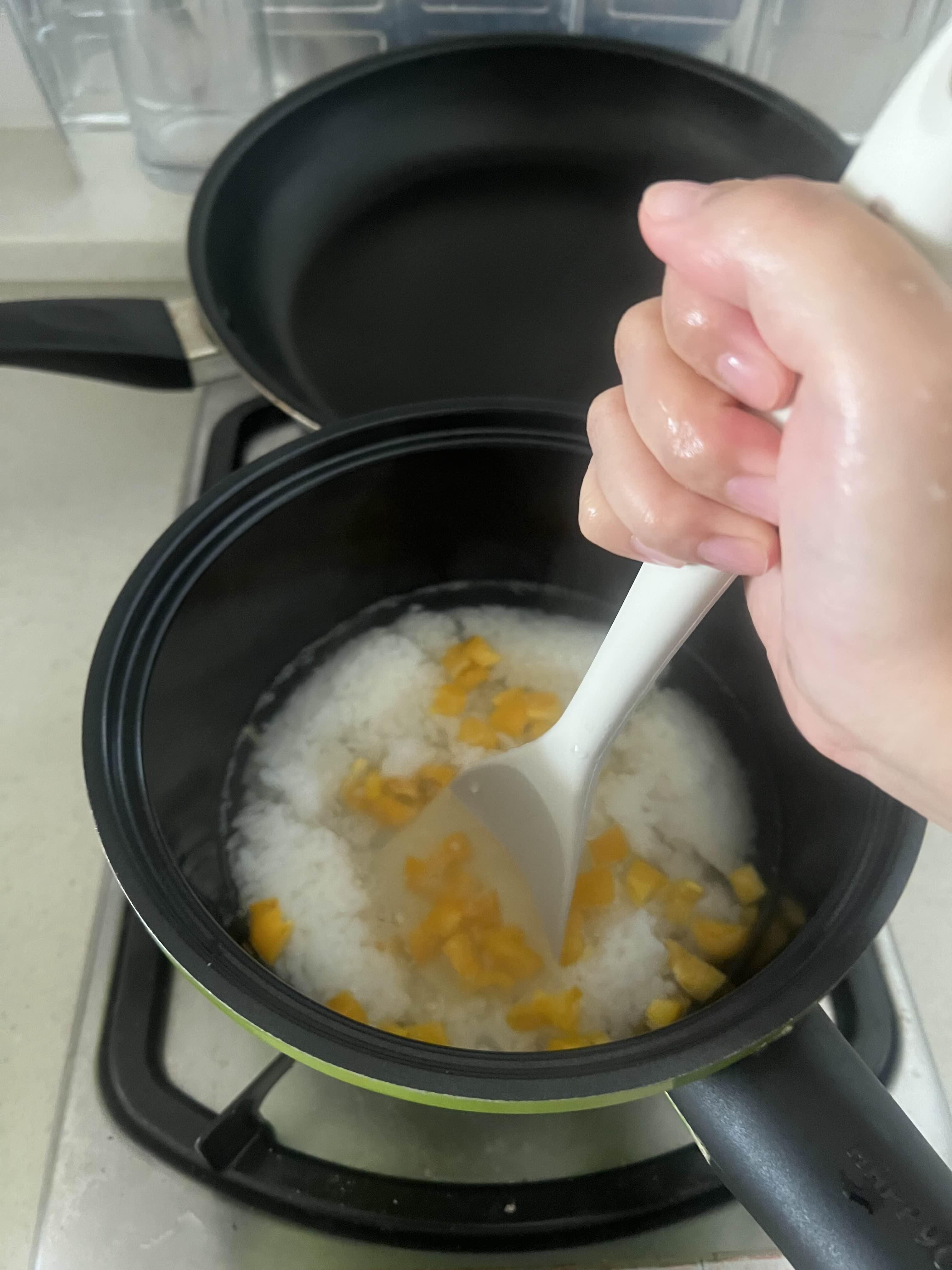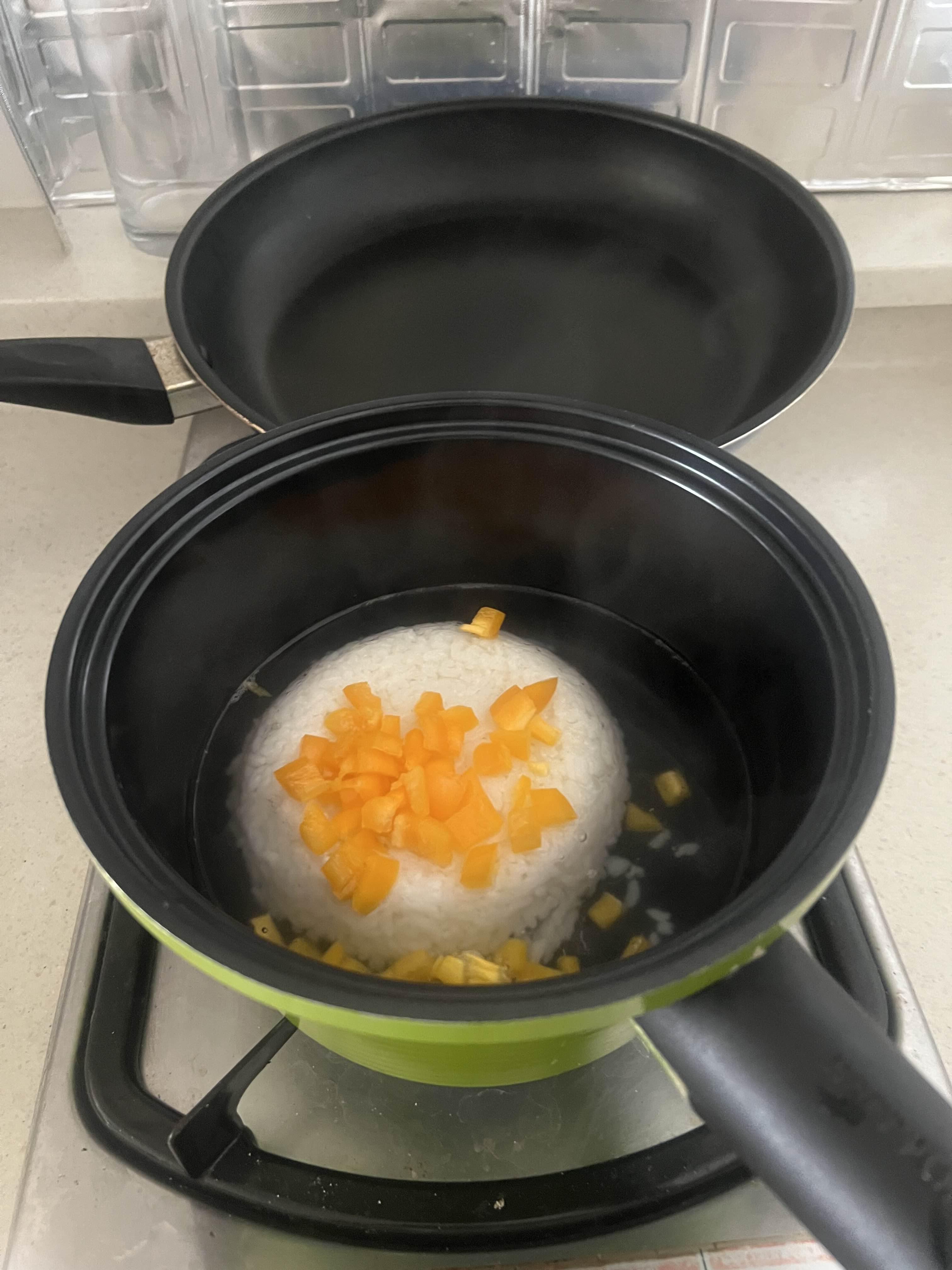 집에 재료가 없어서 파프리카로 계란죽 만들었어요.