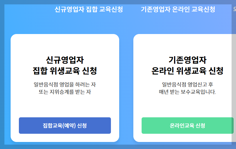 일반음식점 신규·기존 위생교육, 온라인 위생교육 신청 음식점 위생교육신청, 위생교육수료증 위생교육 일정 안내.