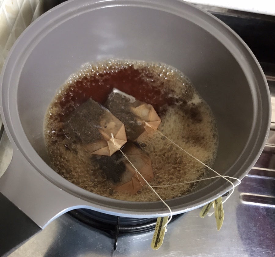 물을 조금 담고 티백이 우려나오도록 끓여줍니다.