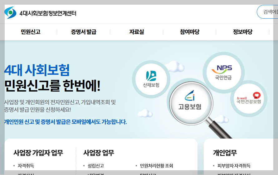 아래 이미지를 클릭하시면 4대사회보험정보연계센터 홈페이지로 연결됩니다.